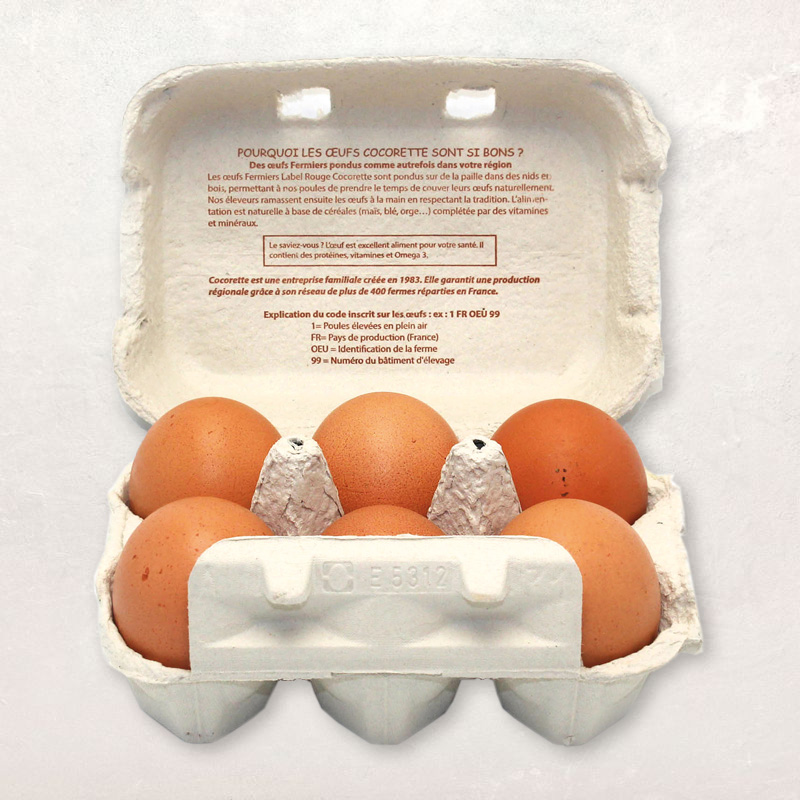 Les œufs Cocorette sont produits dans de petites fermes familiales selon les pratiques d'autrefois : authentiques, pondus sur de la paille, par des poules élevées en liberté et nourries sainement, puis ramassés à la main.