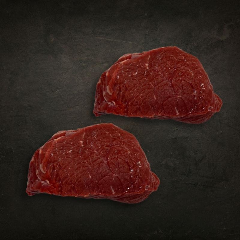 Ce pavé de rumsteck de bœuf Parthenais est une pièce qui offre des fibres courtes, relativement pauvre en gras et très tendre.