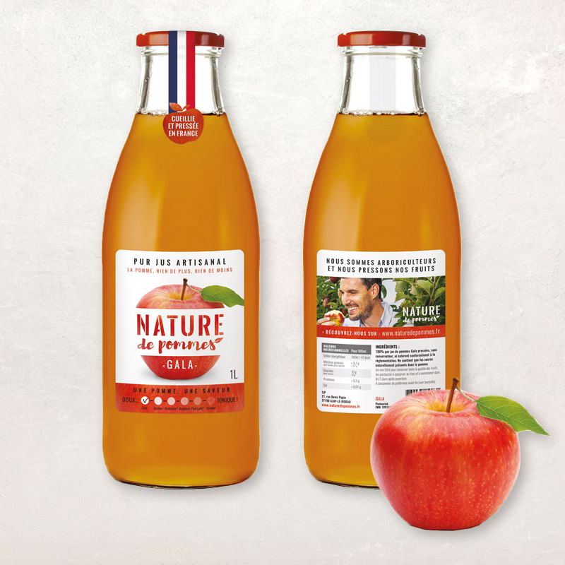 Enrobé en bouche, ce jus de pomme Gala offre des saveurs qui rappellent les fruits caramélisés.