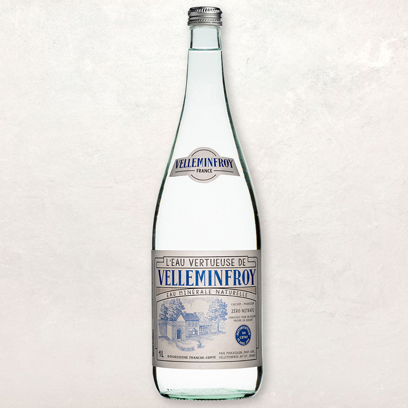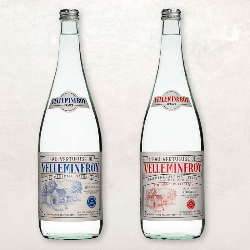 Dans son élégante bouteille vintage, l’eau plate Velleminfroy se déguste comme un bon cru.