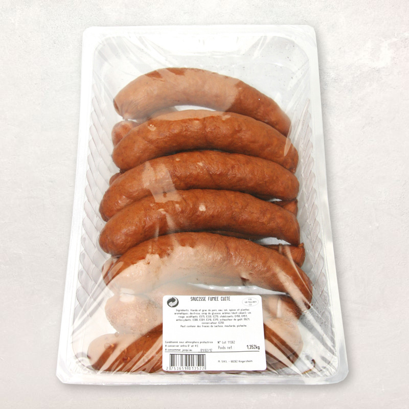 Un peu plus grosse que la knack, la saucisse fumée d'Alsace se prépare de la même façon : simplement réchauffée à l'eau voire grillée.