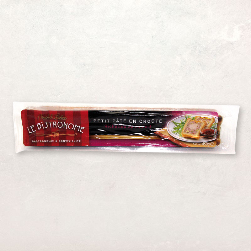Ce produit est élaboré à partir de volaille française avec un large médaillon de mousse de foie de canard.