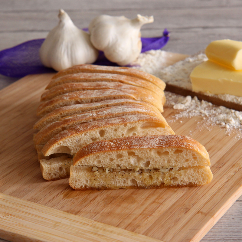 Ce préfou pur beurre à l'ail, déjà tranché, est bien pratique pour varier les plaisirs à l’heure de l’apéro ou accompagner une salade à l’heure du repas !
