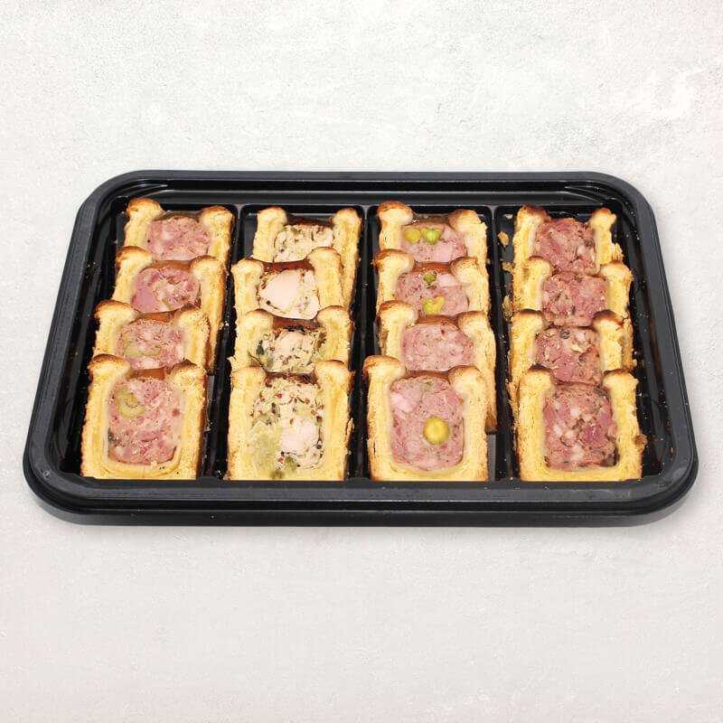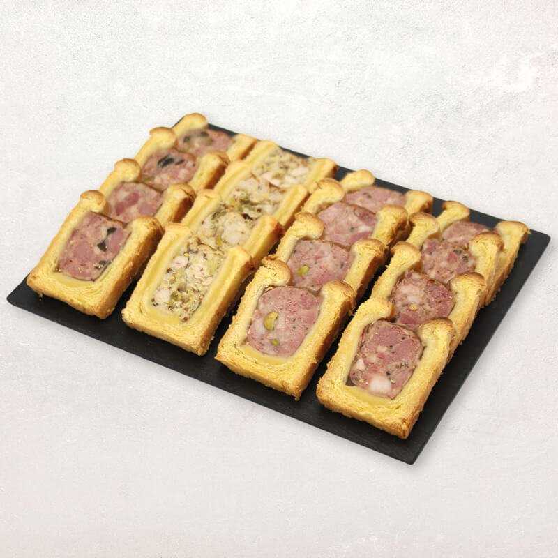 Les pâtés en croûte de Michel Bolard sont élaborés avec des farces riches en morceaux de viande préalablement marinés avec des épices et aromates.