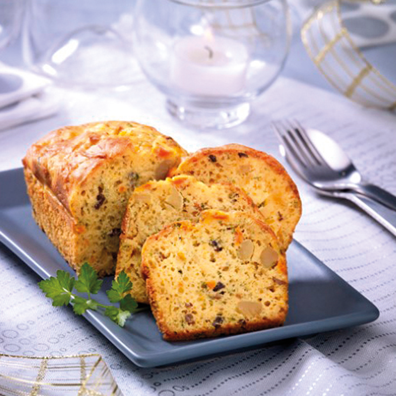 En entrée en plat principal avec une salade ou à l'apéritif ce cake aux ingrédients festif est apprécié pour sa saveur cuisinée son moelleux et ses marquants généreux.