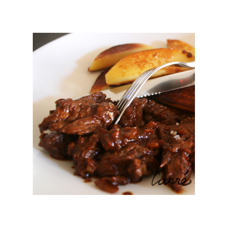 Découpez les bavettes en morceaux, l'oignon et la tomate en cubes.