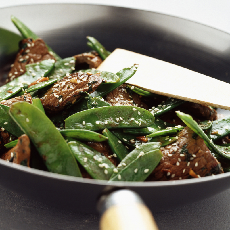 Versez l’huile dans le wok et faites revenir l’échalote et les lanières de viande de bœuf pendant 3 minutes. Ajoutez les haricots plats, la sauce soja et le vinaigre. Laissez cuire encore 3 minutes. En fin de cuisson, ajoutez les graines de sésame.