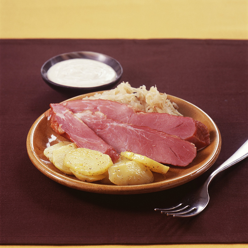 La palette de porc est très consommée en Alsace avec la choucroute, mais s'y déguste également cuisinée à la crème et au raifort alsacien !