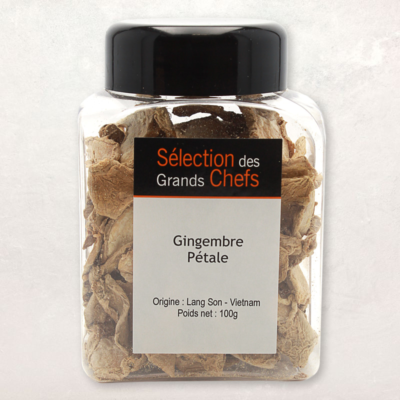 Épice phare des cuisines asiatiques et du Moyen-Orient, le Gingembre apporte une touche d'exotisme à de nombreux plats sucrés ou salés. Ce gingembre aux saveurs confites peut s’utiliser en infusion, en poudre, ou en réhydratant les pétales pour les émincer.
