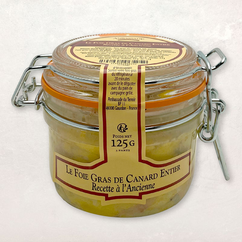 Ce savoureux foie gras de canard français entier a été soigneusement éveiné assaisonné simplement de sel poivre.