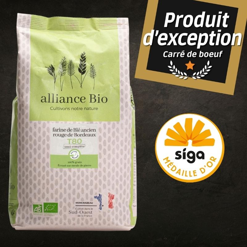 Cette farine de blé français T80 est issue de l'ancienne variété de blé "Rouge de Bordeaux".