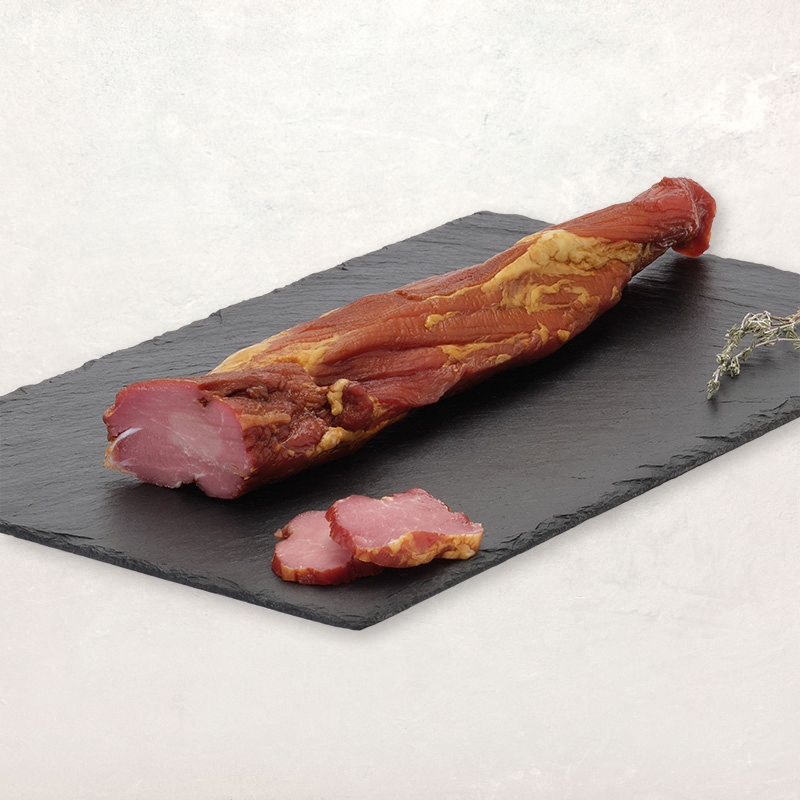 Ce filet mignon de porc fumé LPF de la marque Charcuterie du Moulin est un produit de charcuterie haut de gamme, fabriqué à partir de viande de porc de qualité supérieure et élevé en France.