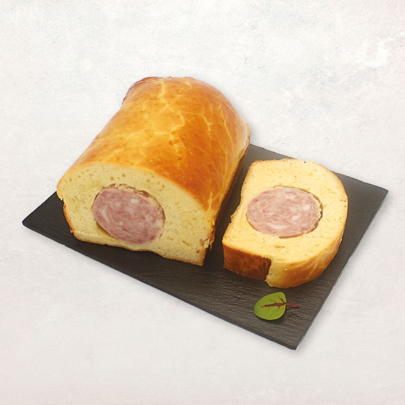 Délicieux en entrée, ce véritable saucisson lyonnais brioché est également incontournable au moment de l'apéritif. Finement tranché, il se déguste aussi bien nature qu'avec des cornichons et du beurre.