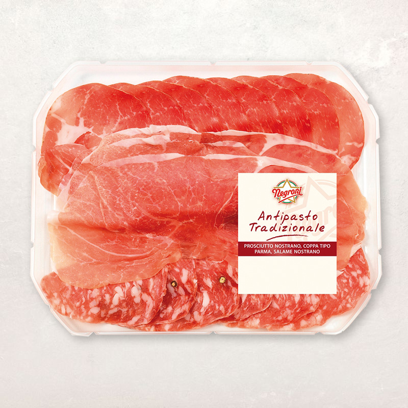 Finement tranchée, cette charcuterie italienne procure un plaisir certain en bouche : salame nostrano (saucisson pur porc), coppa tipo parma, prosciutto nostrano (jambon sec de porc).