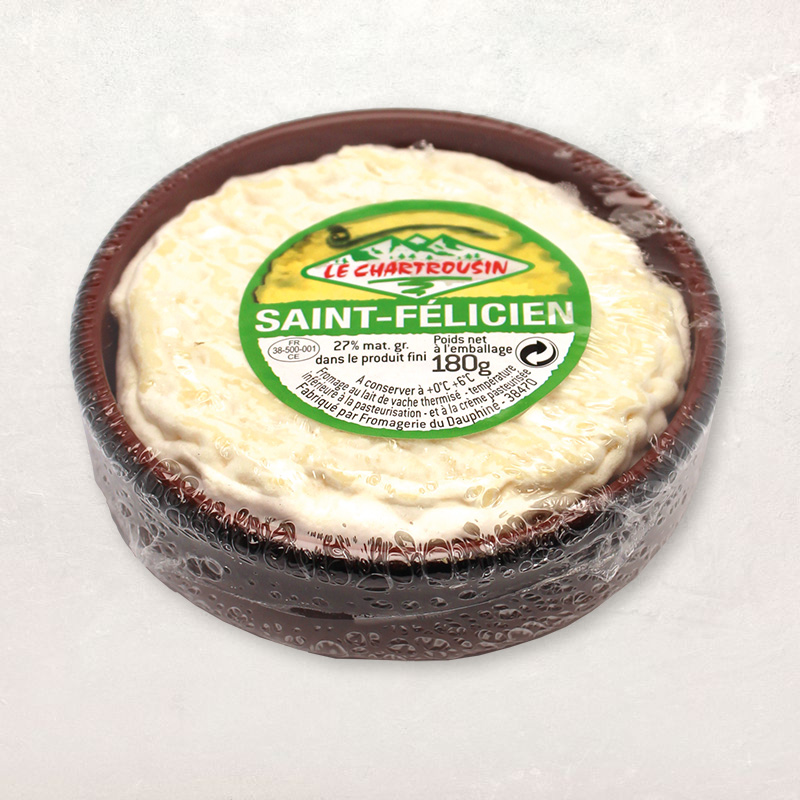 Présenté dans sa coupelle, le Saint-Félicien est un fromage doux et onctueux au léger goût de noisette.