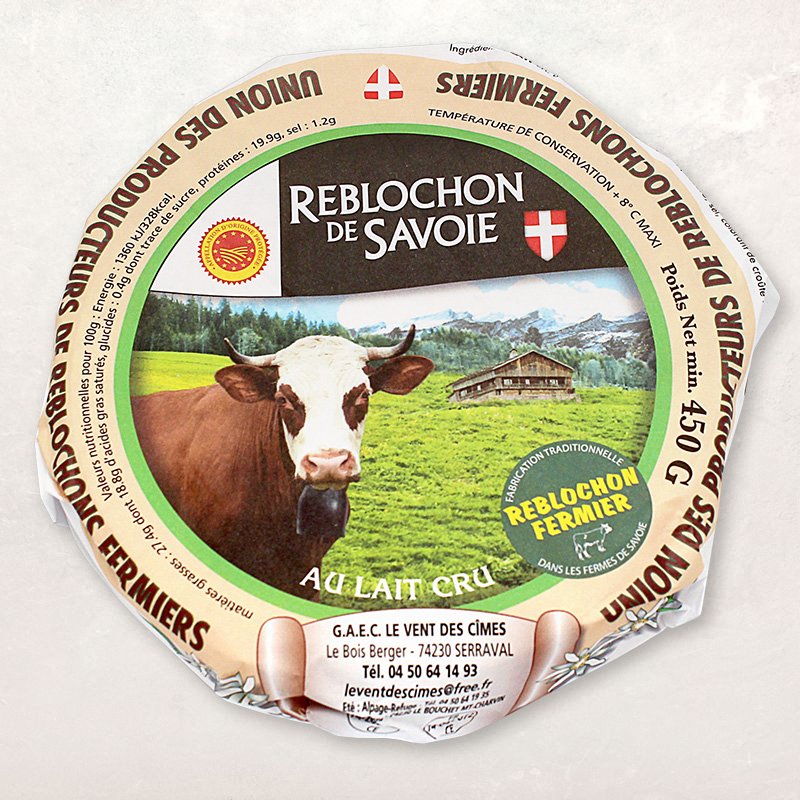 Ce reblochon de Savoie fermier au lait cru est fabriqué deux fois par jour à la ferme juste après la traite et à partir du lait d'un seul troupeau selon les techniques traditionnelles.