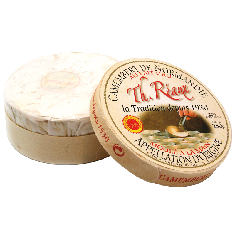 Produit à partir de lait cru et moulé à la main, le camembert de Normandie est un fromage à pâte molle et à croûte fleurie.