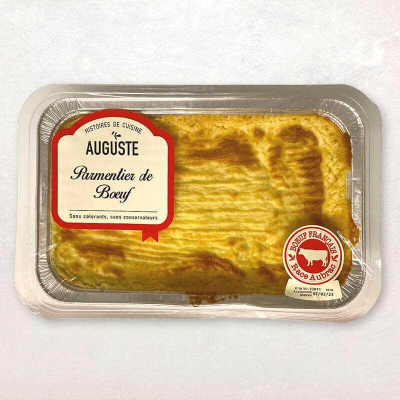 Cet authentique parmentier de boeuf Aubrac est réalisé à partir de produits naturels, sans additifs ni conservateurs, à partir de viande effilochée cuisinée avec une fondue d'oignons et recouverte d'une onctueuse purée maison. Un plat savoureux prêt réchauffer pour deux à trois personnes.