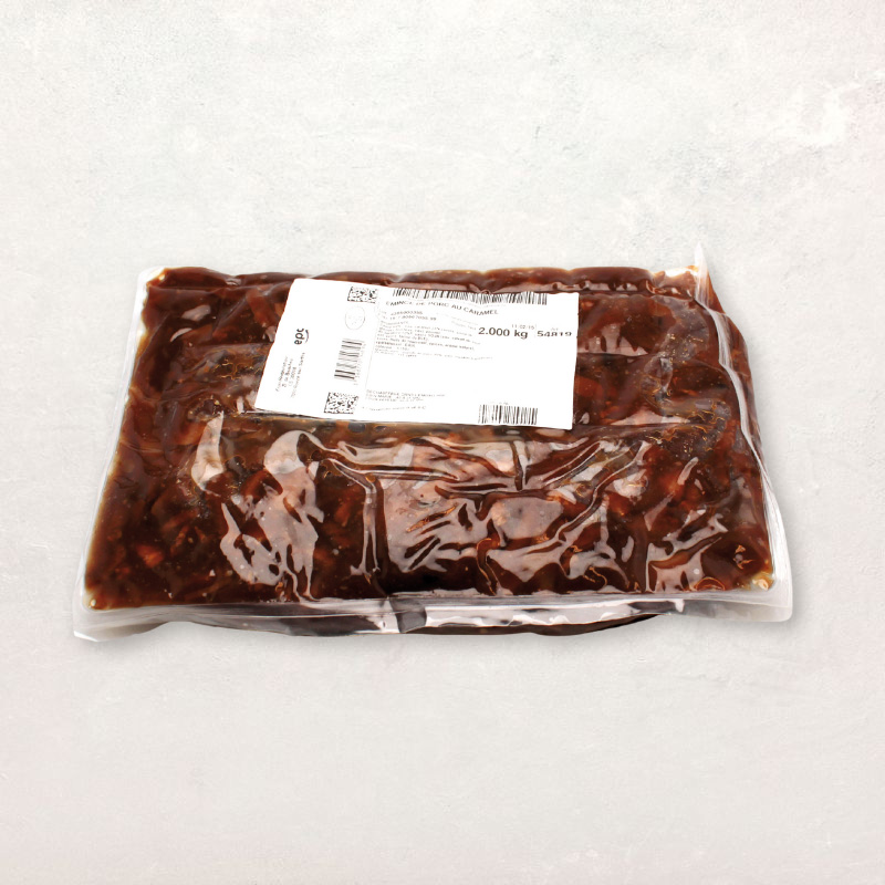 Les émincés de viande de porc sont cuits dans une sauce sirupeuse.