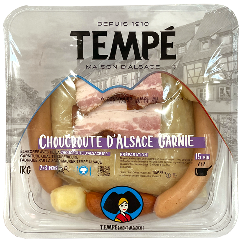 Cette délicieuse choucroute garnie est préparée par la maison Tempé, charcutier-traiteur d'Alsace depuis plus de 100 ans, dans leur propre atelier de fumage naturel.
