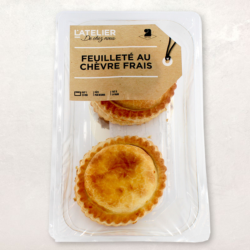 Ce feuilleté au chèvre est garanti sans viande, composé uniquement d’un fromage de chèvre frais de fabrication artisanale et d’une pâte feuilletée pur beurre.