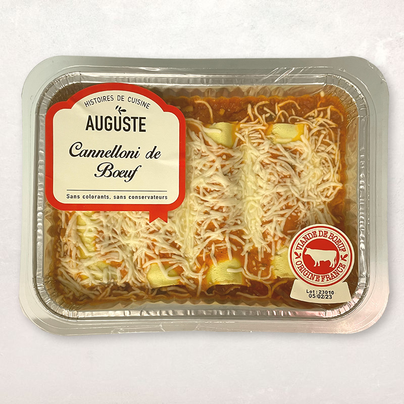 Ces canelloni de boeuf français sont préparés avec de la sauce aux tomates fraîches, des oignons mijotés et une pointe de basilic.