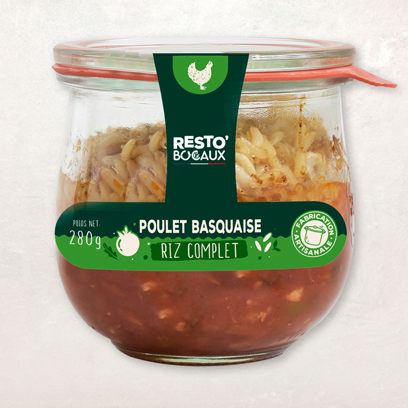 Cette délicieuse recette de poulet basquaise (poulet français) est un plat cuisiné basque par excellence. Mijoté avec patience et soin, vous n'avez plus qu'à le réchauffer ! Produit sans colorant ni conservateur.