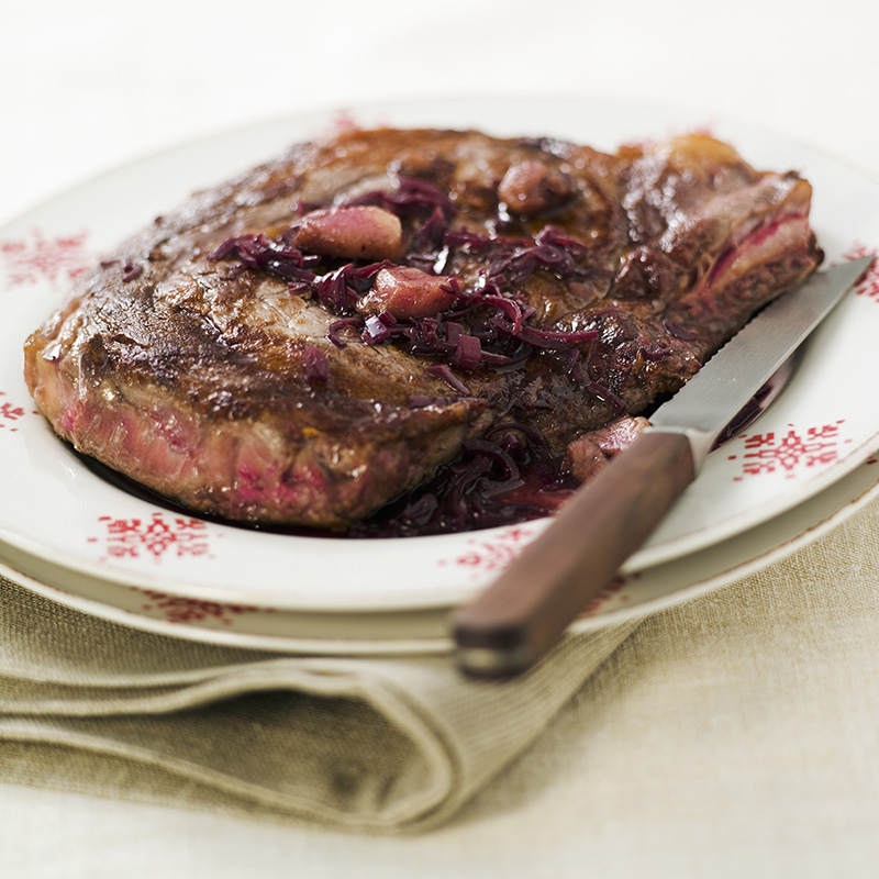 Présentez la viande sur assiettes chaudes, salez-la à la fleur de sel, poivrez-la puis ajoutez la sauce.