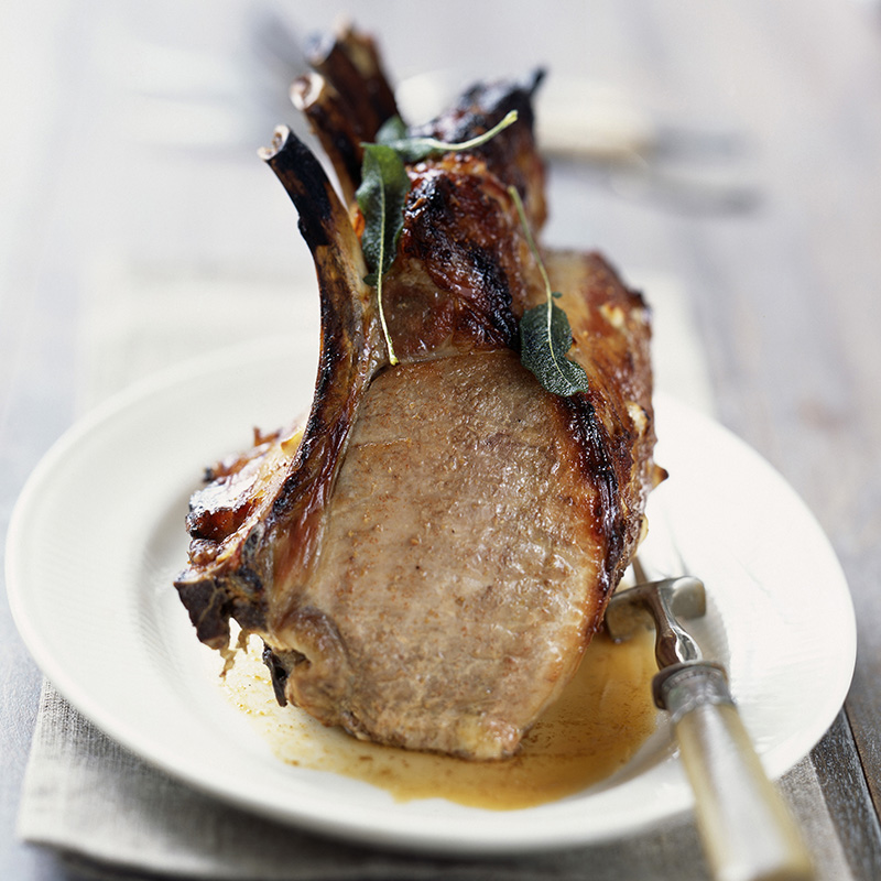 La veille, salez et poivrez le carré de tous côtés en le tapotant pour que l'assaisonnement adhère bien. Lavez les feuilles de sauge, séchez-les et hachez-les grossièrement; mélangez-les dans un bol avec la moutarde et le miel. Badigeonnez-en le carré puis enveloppez-le d’un film alimentaire et réservez au frais jusqu’au lendemain.
