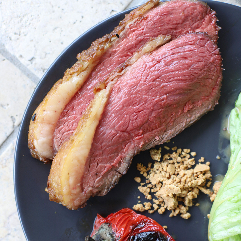 Vous pouvez accompagner cette viande d'exception de demi poivrons grillés au barbecue et d'échalotes cuites sur la braise en papillote d'aluminium.
