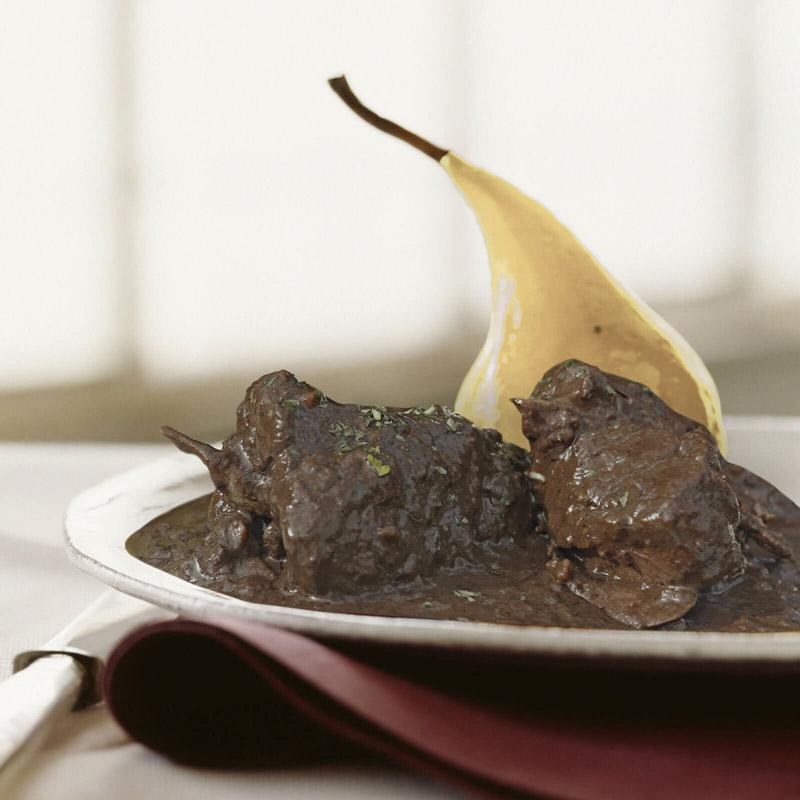 Et si vous n'appréciez pas les poires, une purée de céleri ou de pommes de terre au céleri accompagnera également très bien votre civet de sanglier.