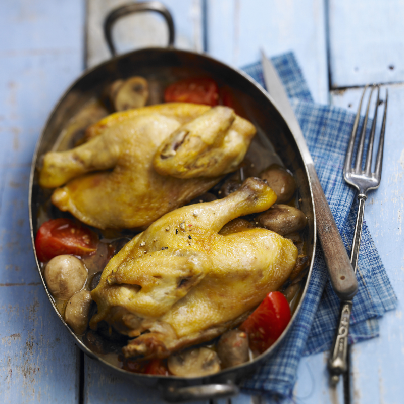 Cette recette de coquelet génère un très bon jus de cuisson. Vous pouvez l'accompagner de pâtes, de riz ou d'une semoule pour en profiter pleinement.