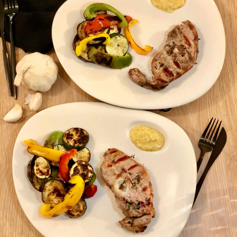 Avec de belles côtes filet d'agneau du Quercy, notre partenaire Diet et Délices nous a concocté une recette colorée et délicieuse en associant à l'agneau des légumes grillés et une petite sauce maison à l'ail.
