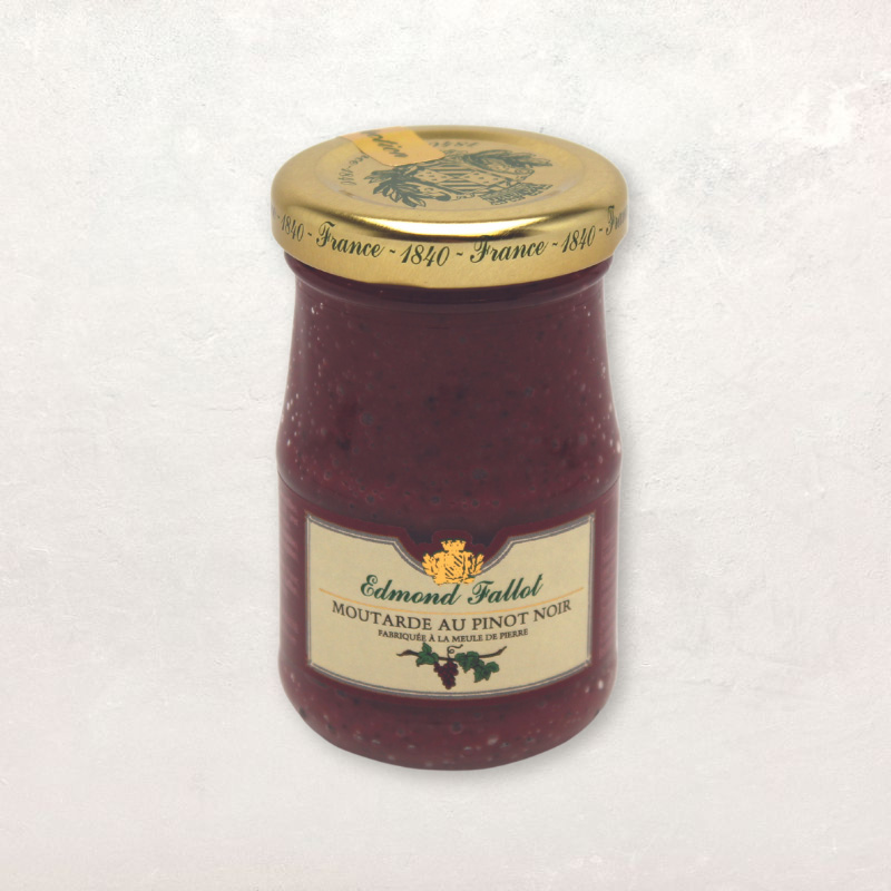 Cette union parfaite entre un cépage de renom comme le pinot noir et le piquant d'une grande moutarde nous offre une belle robre pourpre aux reflets violacés qui inspire le gibier ou le magret de canard.