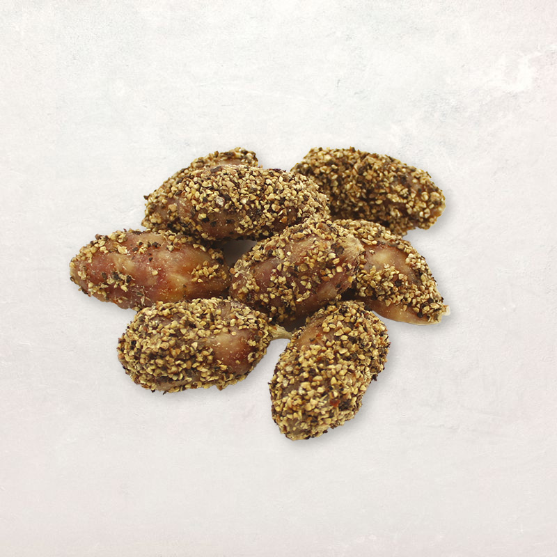 Ces mini saucissons au poivre sont préparés avec les meilleurs morceaux du porc. Pratiques, faciles à emporter ils peuvent être dégustés en pique-nique, à l'apéritif ou être servis en entrée avec un plateau de charcuterie accompagnés de pain frais.