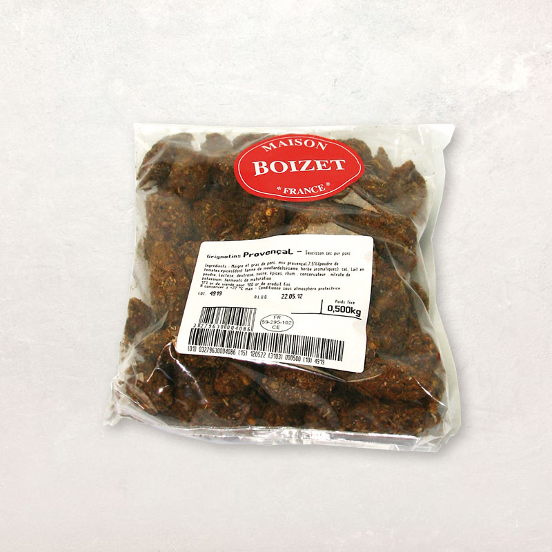 Ces mini saucissons à la provençale sont préparés avec les meilleurs morceaux du porc. Pratiques, faciles à emporter ils peuvent être dégustés en pique-nique, au goûter, ou être servis en entrée avec un plateau de charcuterie accompagnés de pain frais.