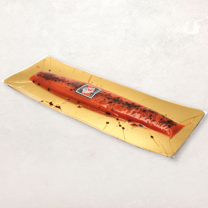 Extrait de la partie la plus charnue du saumon fumé et mariné à la mandarine, ce cœur de filet de saumon est un morceau de choix à chair onctueuse et fondante : un parfait régal !