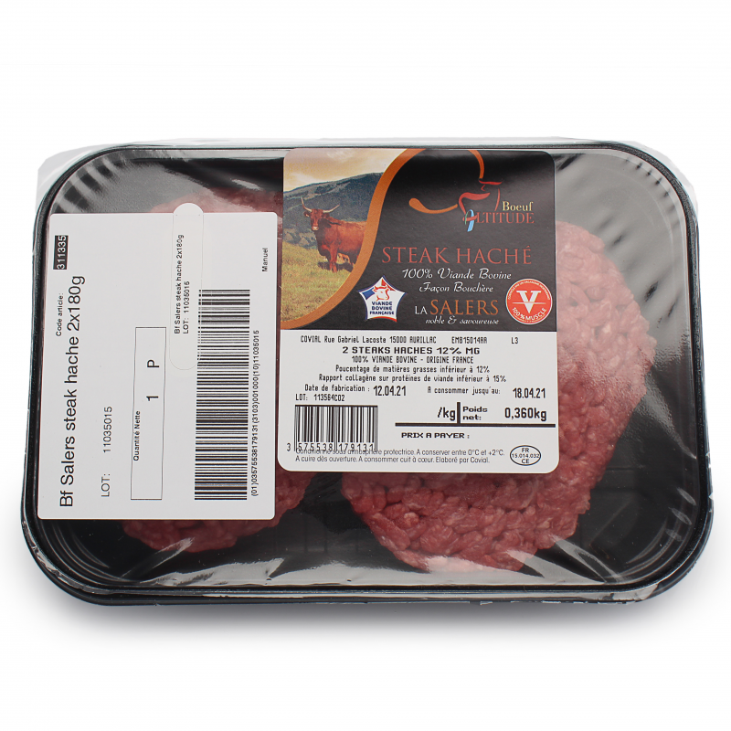 Pour faire ce généreux steak haché de boeuf de Salers, les viandes sont sélectionnées dans les meilleurs morceaux du boeuf renommé de Salers.