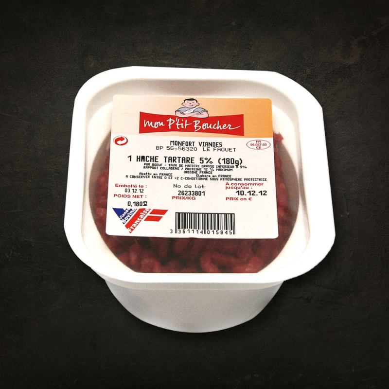Travaillé selon des critères microbiologiques plus stricts que le steak haché classique, ce steak tartare est fait pour une consommation crue ou saignante.