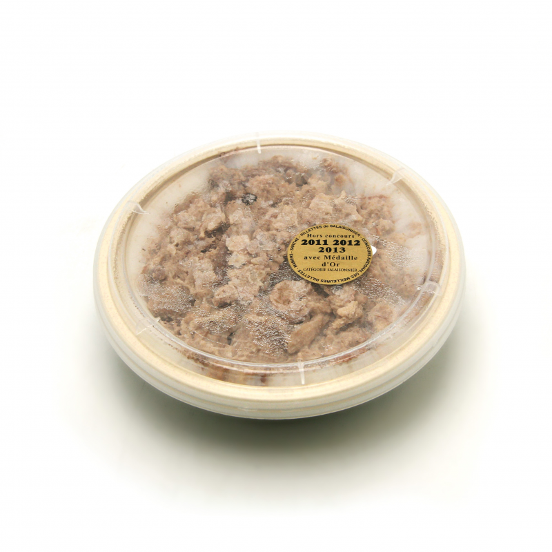 La production Ruel est momentanément interrompue suite à l'incendie de l'entreprise, ce qui rend ce produit indisponible. Toutefois, afin de vous offrir le meilleur service possible, nous vous proposons un produit de qualité équivalente : Rillette du Mans porc français pot grès 220g