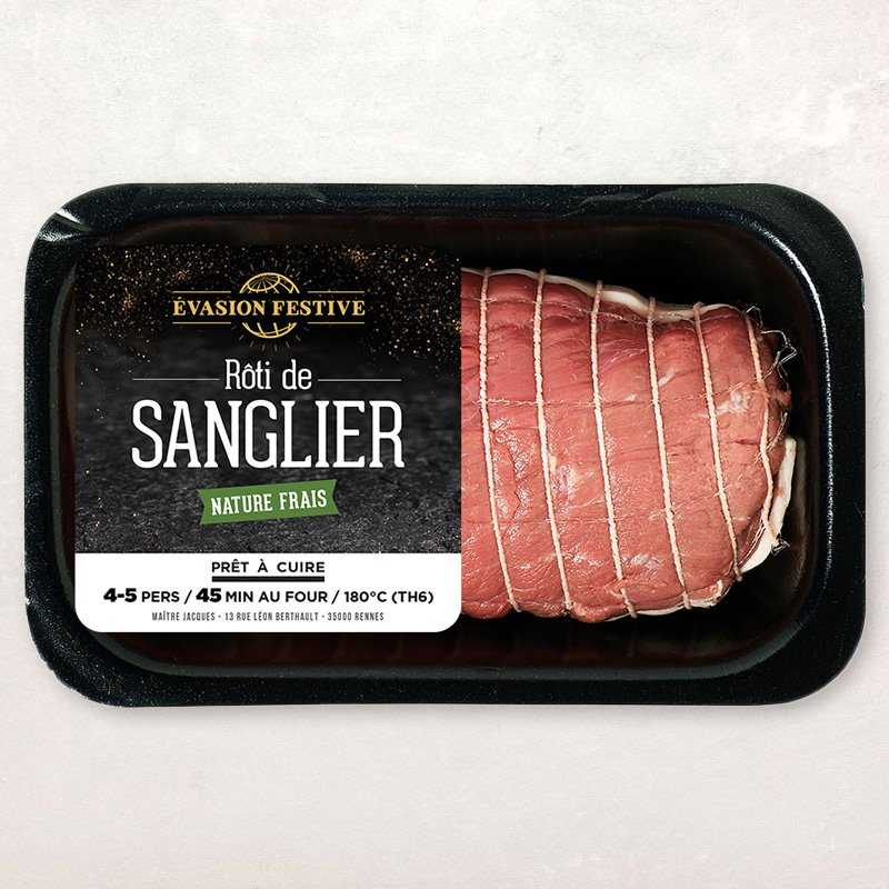 Pour vos repas de fin d'année, ce rôti de sanglier augure d'un repas convivial et chaleureux avec marrons, airelles, céleri et autres légumes d'hiver.Nous vous conseillons de prévoir des tranches de rôti de sanglier d’environ 200g par personne (soit un rôti de 750g pour 3 personnes).